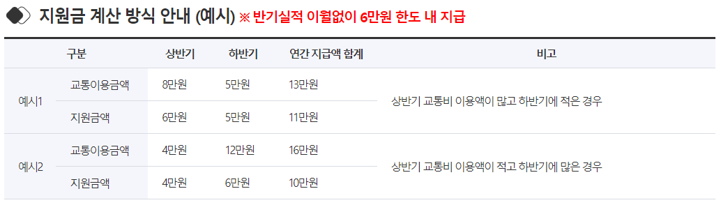 상반기 최대 6만 원 하반기 최대 6만원 한도 내에서 경기버스(환승통행 포함) 실사용액의 100% 지원